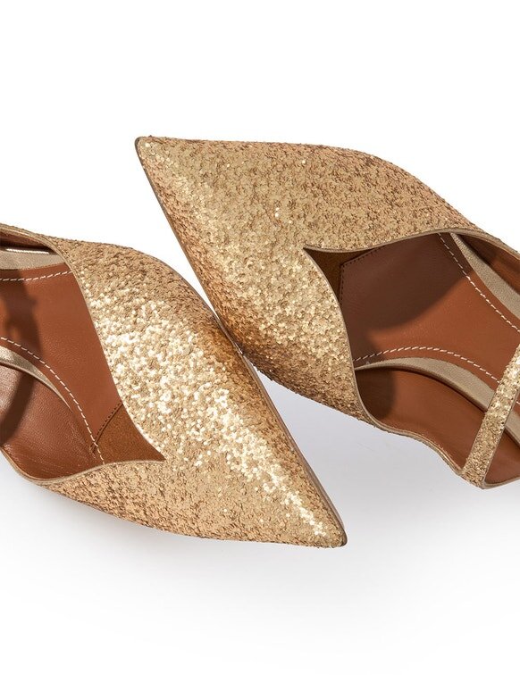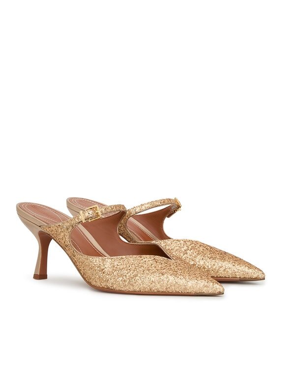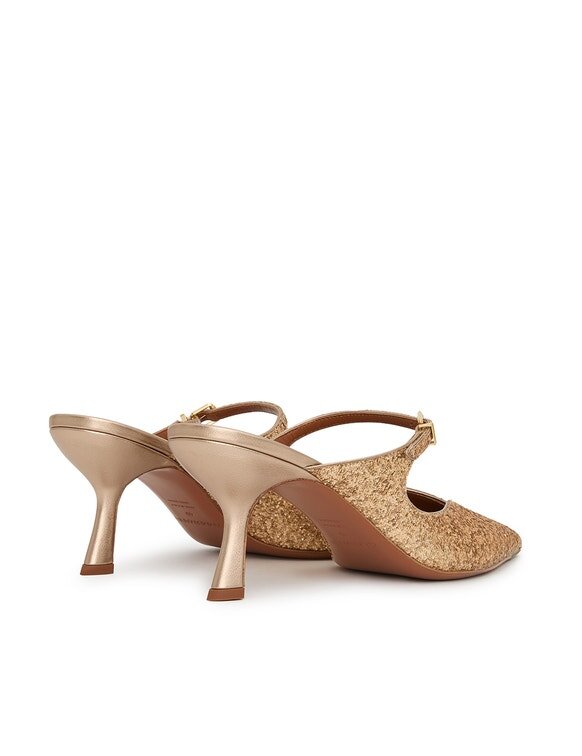 Il modello Aura Mule 65 in oro della nostra collezione Cruise 2026, Twisted Romance. Aura aggiunge un’eleganza disinvolta a ogni occasione.