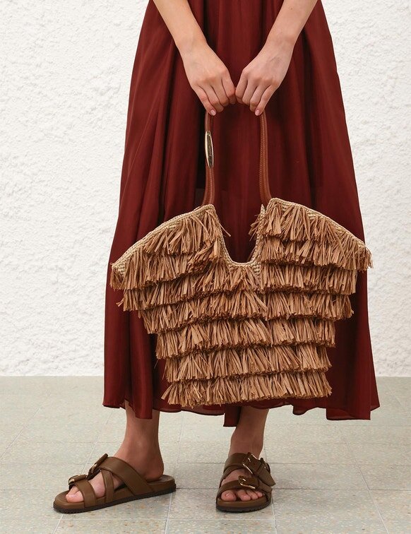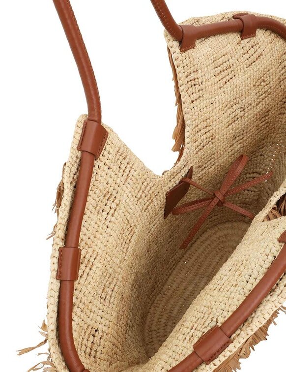 Materiale principale: rafiaRealizzata in rafia intrecciata a mano in Madagascar; lo sfilacciamento naturale e le variazioni sono parte del suo carattere. Pulire localmente con un panno umido; evitare detergenti chimici per prevenire lo scolorimento. Con il tempo, la rafia può ammorbidirsi, sbiadire o perdere rigidità. Per evitare danni, tenere lontano da umidità, tessuti colorati e Accessori. Conservare in un ambiente asciutto nella custodia originale.Controllare sempre l’etichetta o la scheda di cura per istruzioni specifiche.