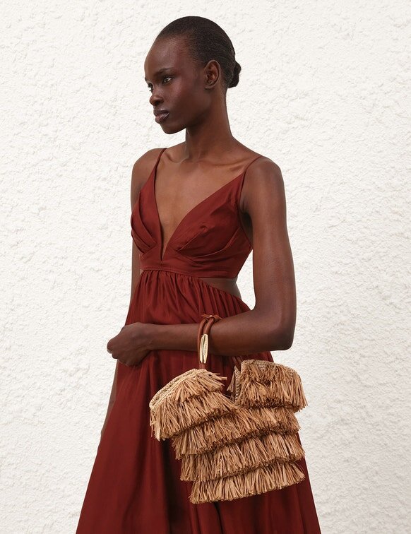Materiale principale: rafiaRealizzata in rafia intrecciata a mano in Madagascar; lo sfilacciamento naturale e le variazioni sono parte del suo carattere. Pulire localmente con un panno umido; evitare detergenti chimici per prevenire lo scolorimento. Con il tempo, la rafia può ammorbidirsi, sbiadire o perdere rigidità. Per evitare danni, tenere lontano da umidità, tessuti colorati e Accessori. Conservare in un ambiente asciutto nella custodia originale.Controllare sempre l’etichetta o la scheda di cura per istruzioni specifiche.
